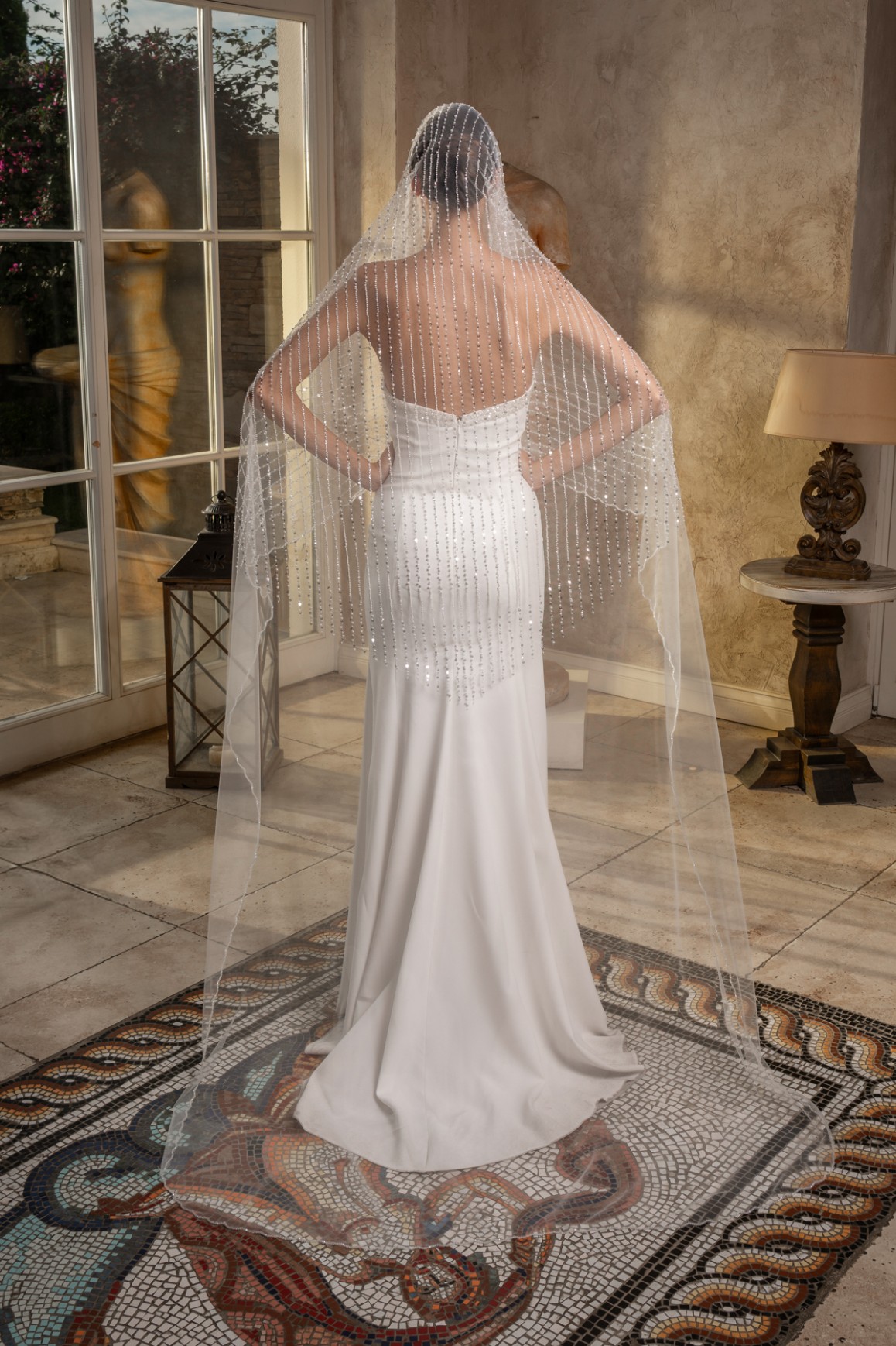 - 2,3 metre uzunluğundaki bu tül duvak, gelinliğinizin uzunluğuna ve tarzına uyum sağlayarak etkileyici bir siluet oluşturur.