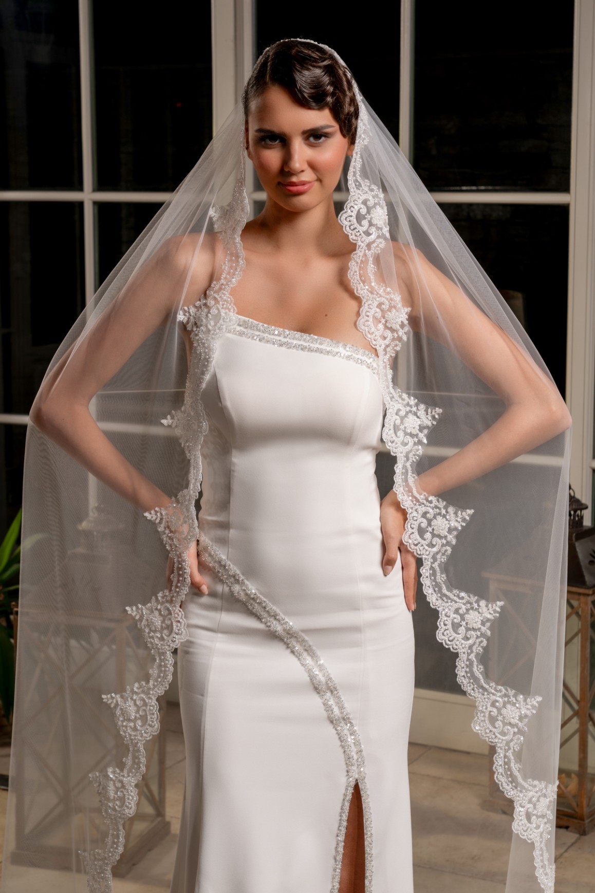 - 2,3 metre uzunluğundaki bu tül duvak, gelinliğinizin uzunluğuna ve tarzına uyum sağlayarak etkileyici bir siluet oluşturur.