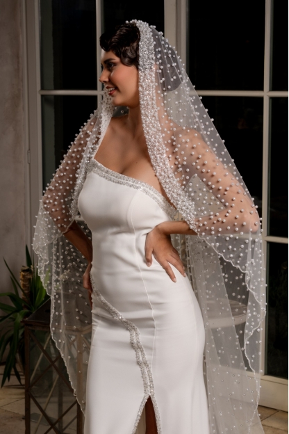 -BOY: 230 CM -EN : 150 CM Gelinliğinizi tamamlayacak şık ve zarif bir aksesuar olan incili gelin duvağı, özel gününüzde göz alıcı bir görünüm sağlar.