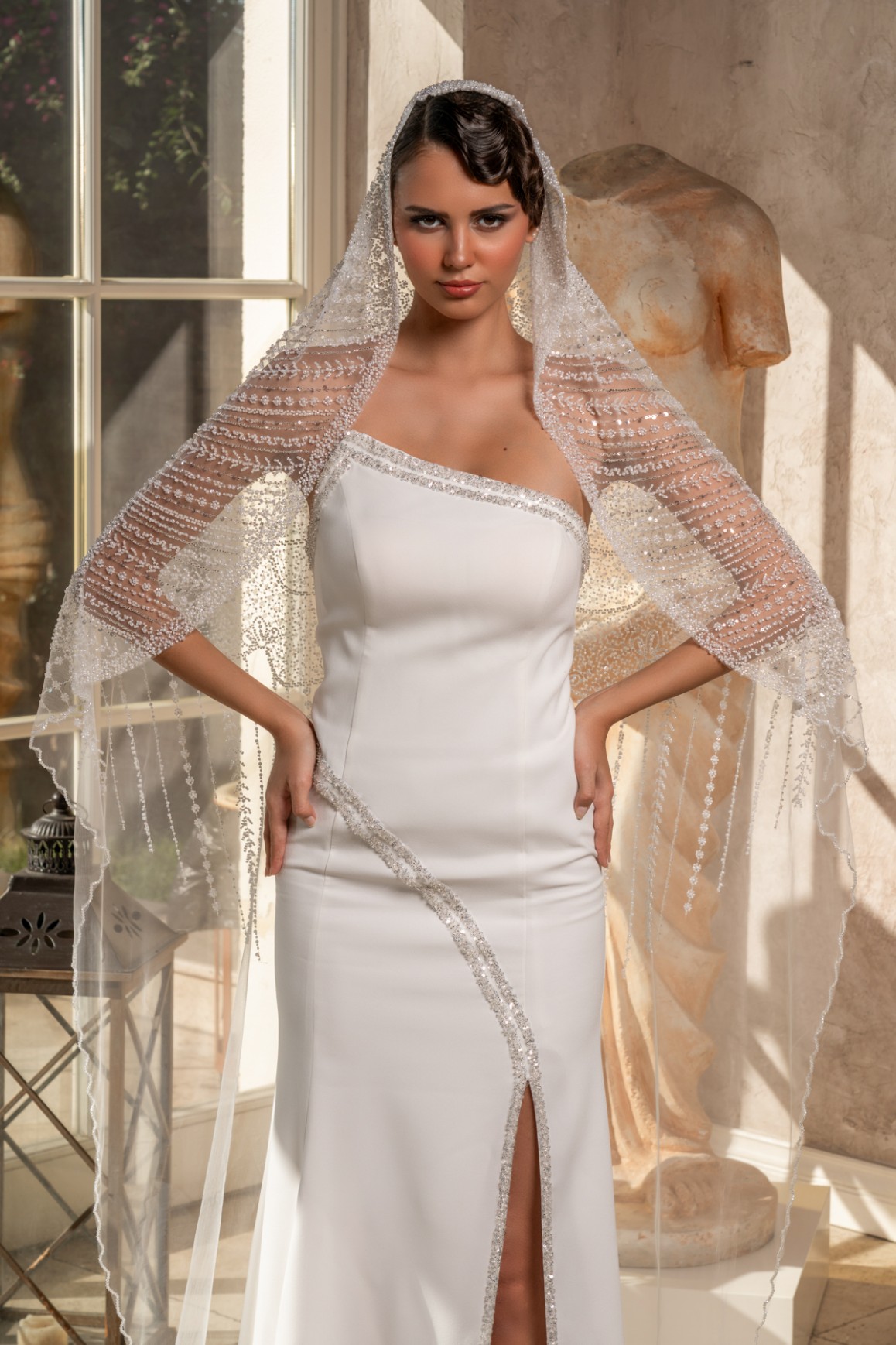 - 2,3 metre uzunluğundaki bu tül duvak, gelinliğinizin uzunluğuna ve tarzına uyum sağlayarak etkileyici bir siluet oluşturur.