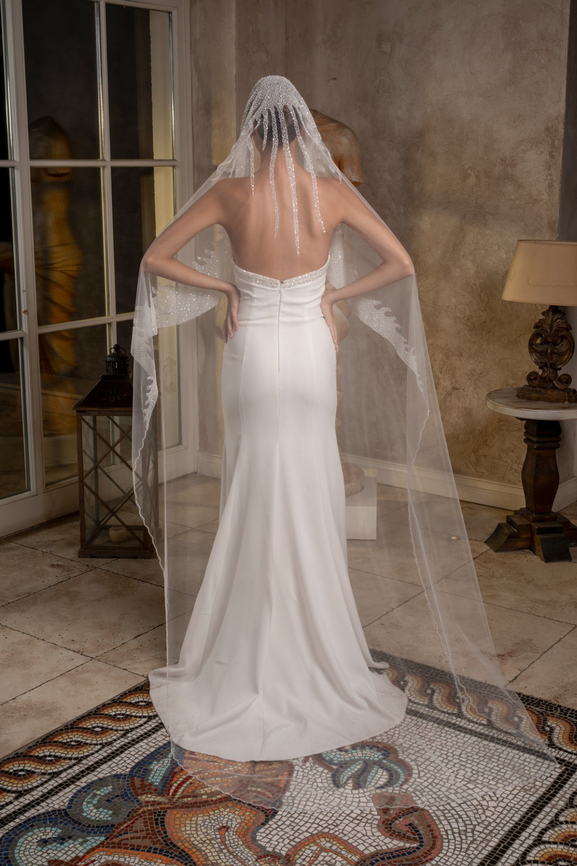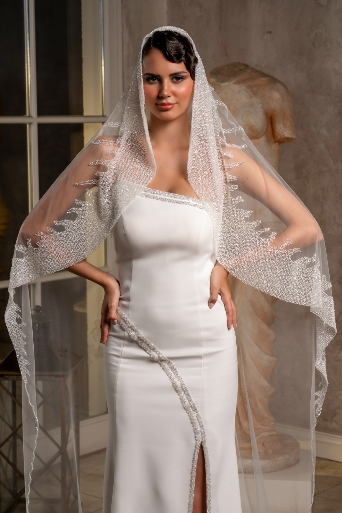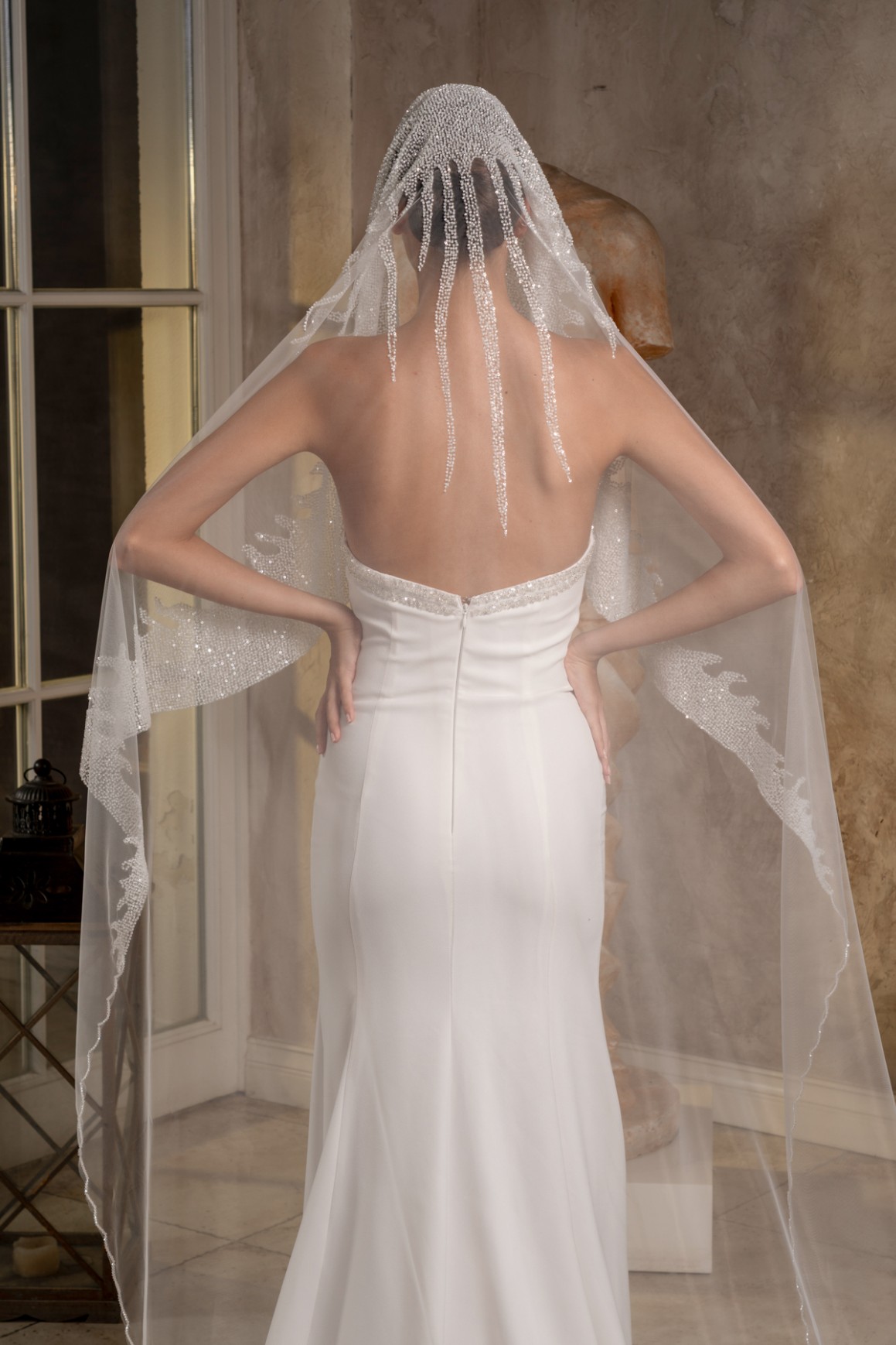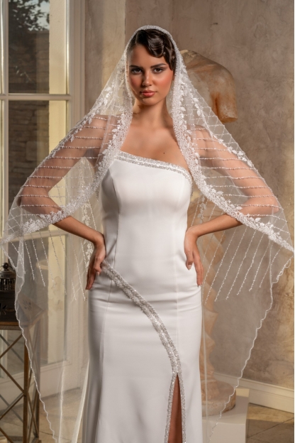 - 2,3 metre uzunluğundaki bu tül duvak, gelinliğinizin uzunluğuna ve tarzına uyum sağlayarak etkileyici bir siluet oluşturur.
