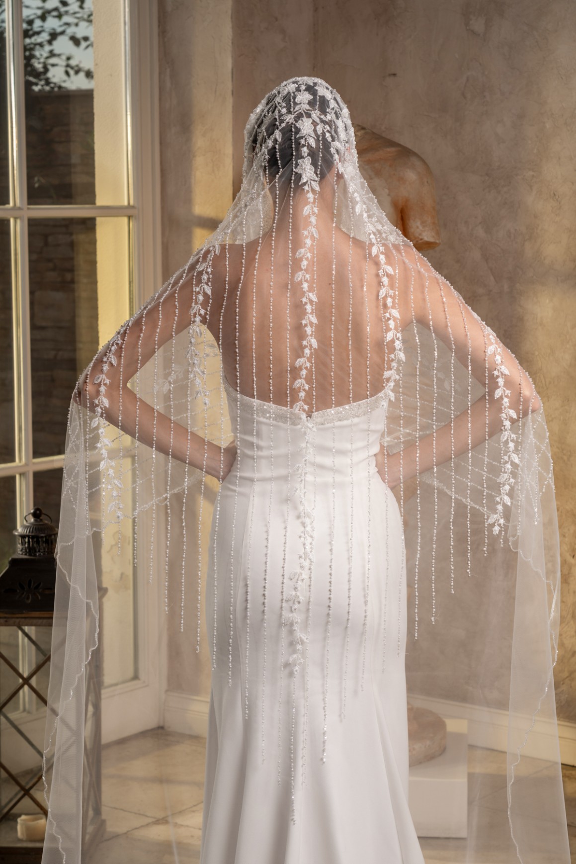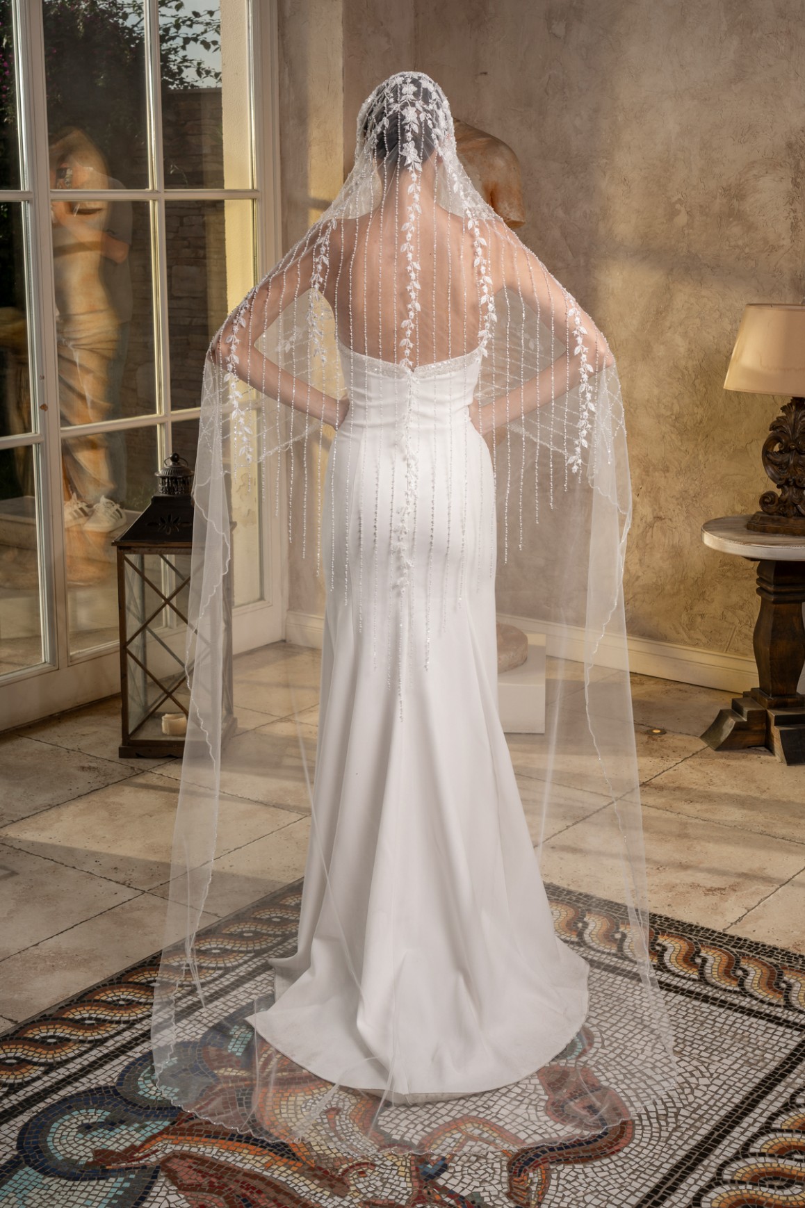 - 2,3 metre uzunluğundaki bu tül duvak, gelinliğinizin uzunluğuna ve tarzına uyum sağlayarak etkileyici bir siluet oluşturur.