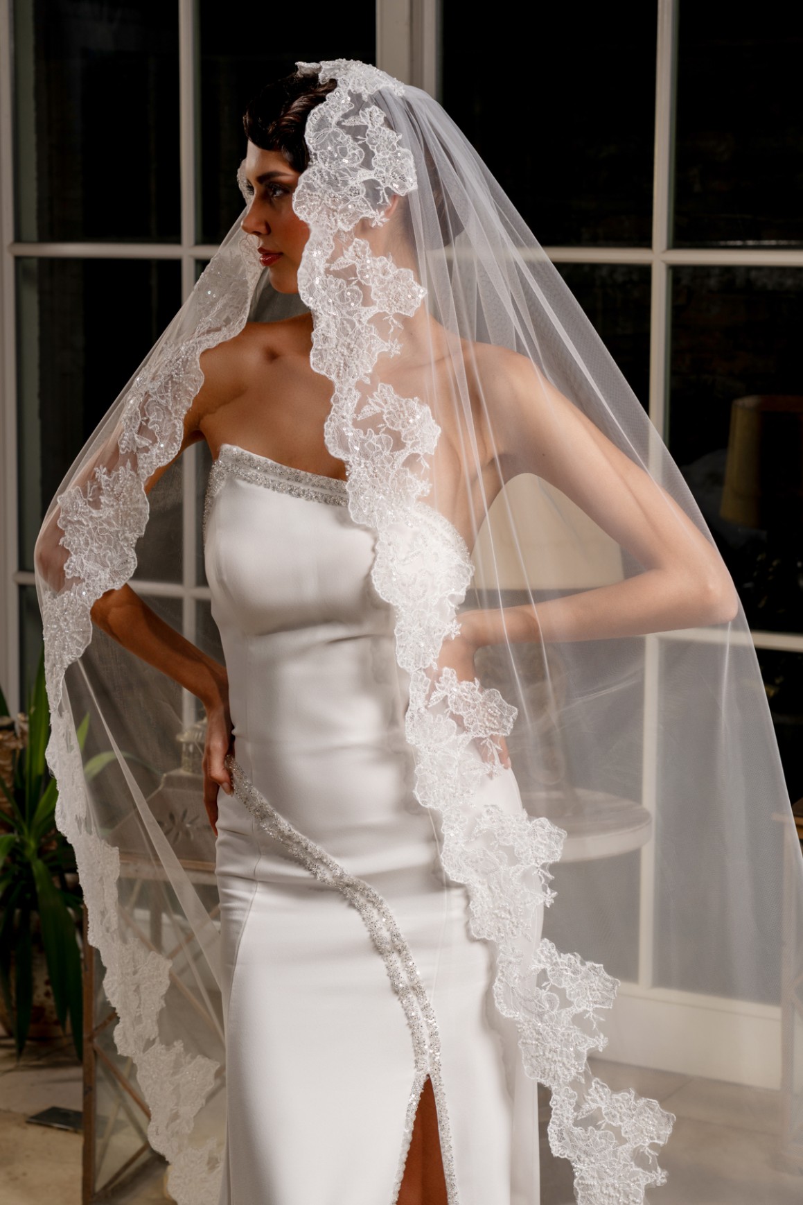 - 3 metre uzunluğundaki bu tül duvak, gelinliğinizin uzunluğuna ve tarzına uyum sağlayarak etkileyici bir siluet oluşturur.