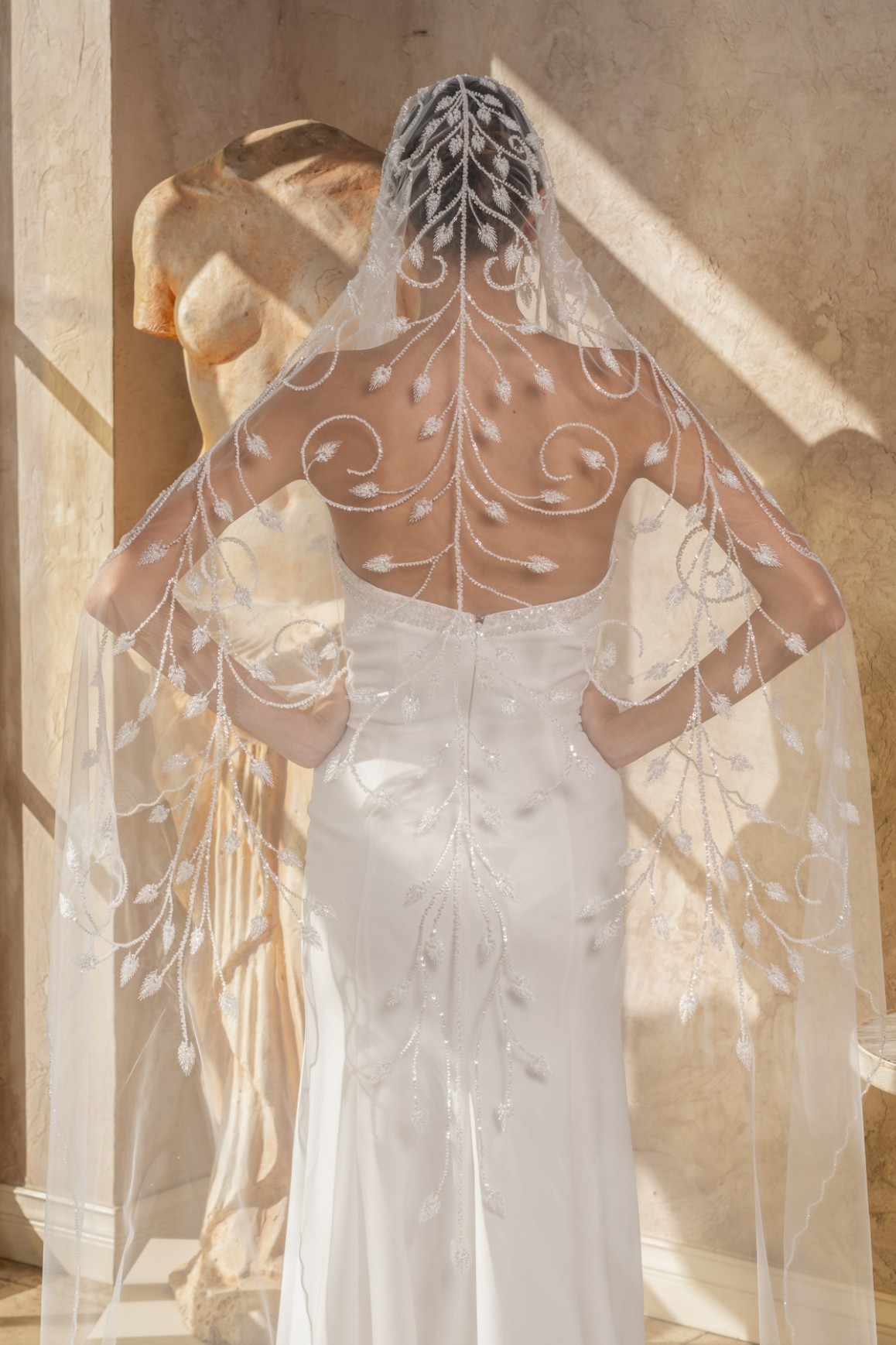- 2,3 metre uzunluğundaki bu tül duvak, gelinliğinizin uzunluğuna ve tarzına uyum sağlayarak etkileyici bir siluet oluşturur.