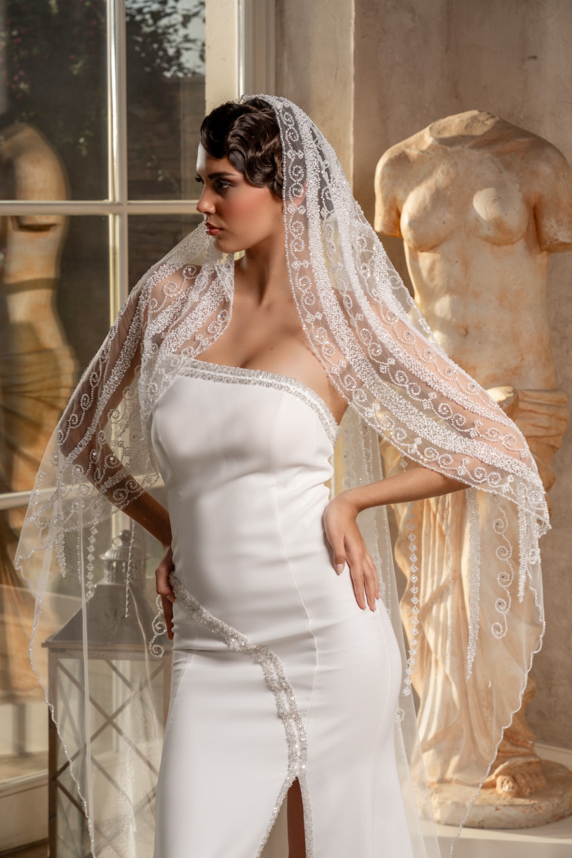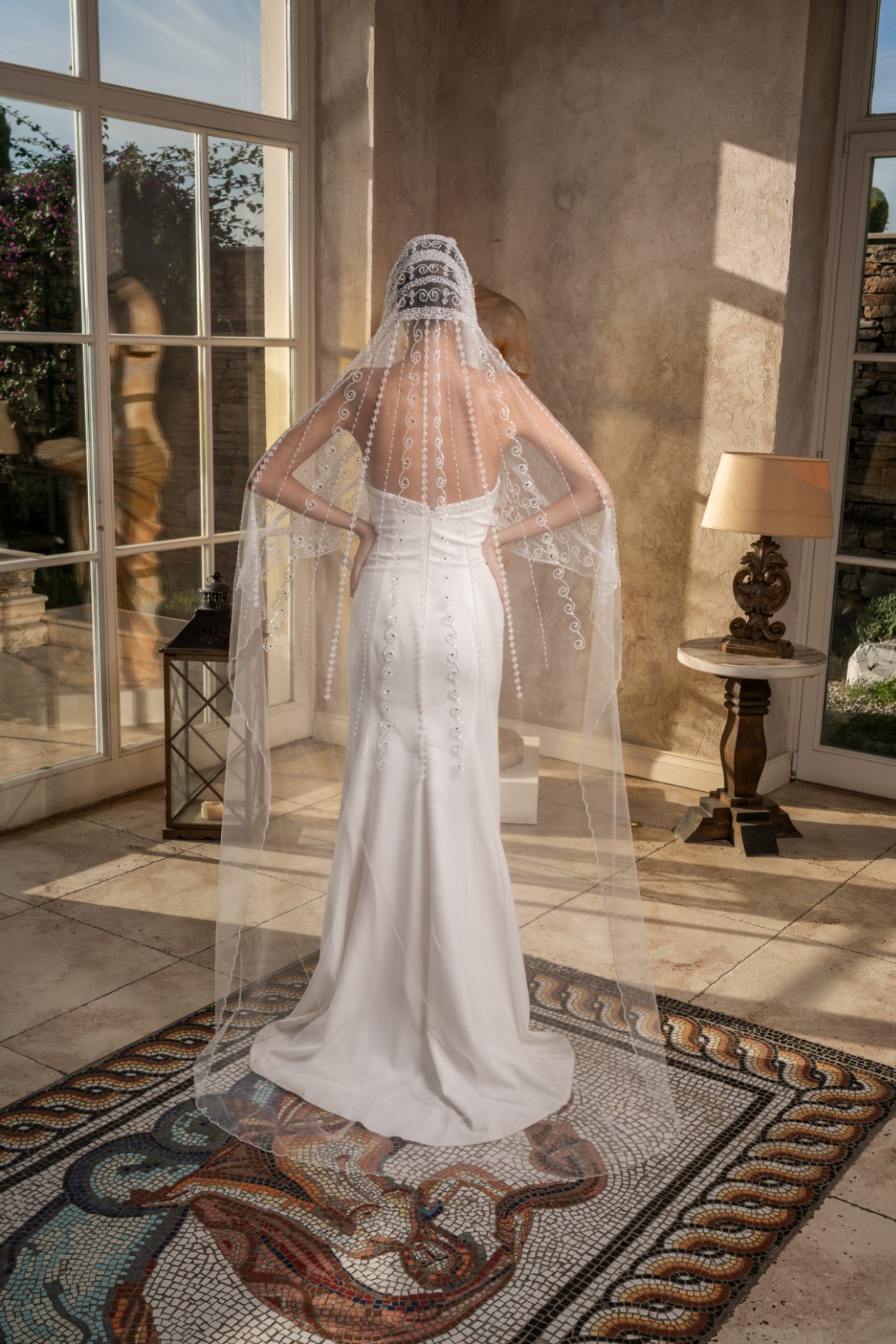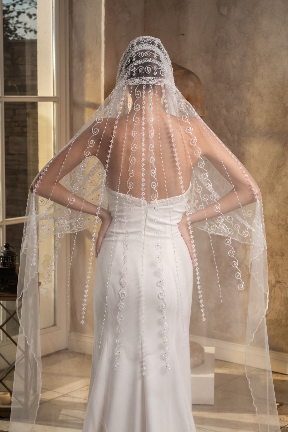 - 2,3 metre uzunluğundaki bu tül duvak, gelinliğinizin uzunluğuna ve tarzına uyum sağlayarak etkileyici bir siluet oluşturur.