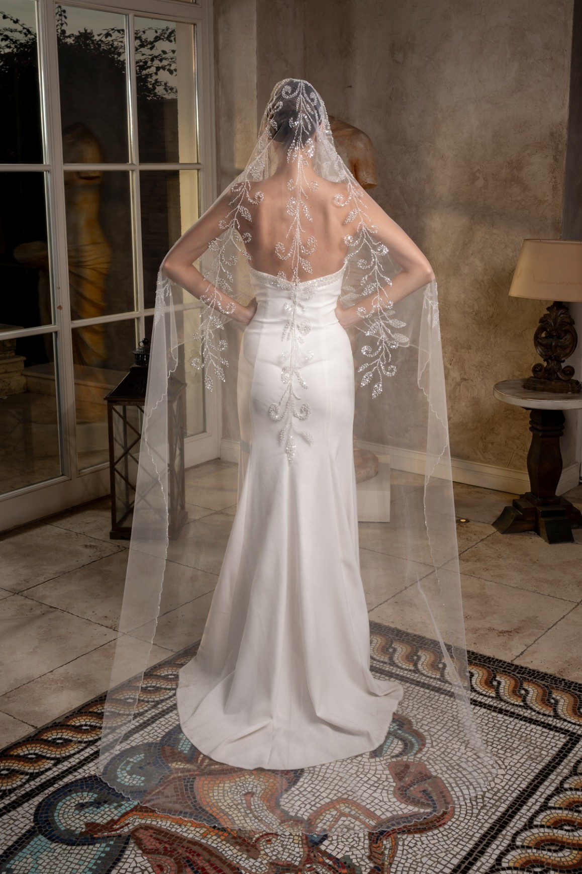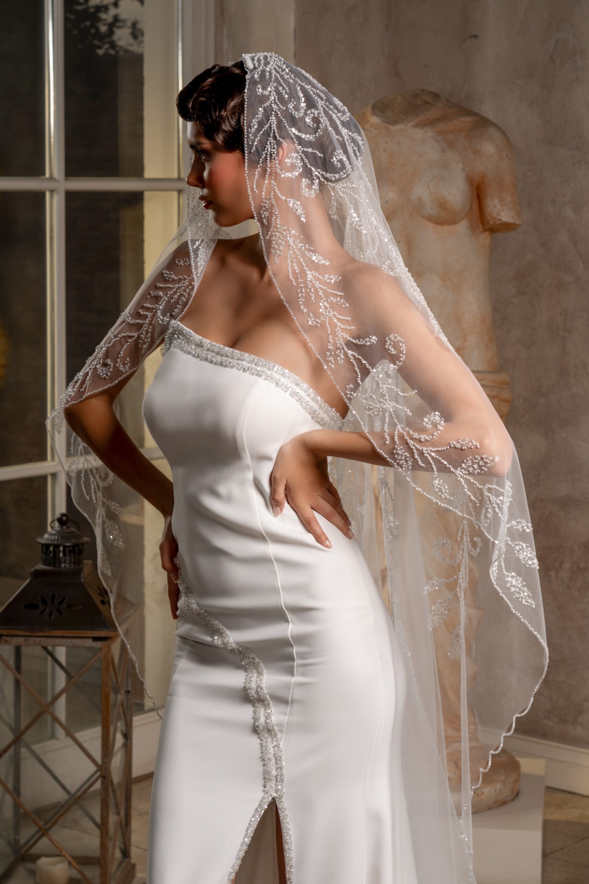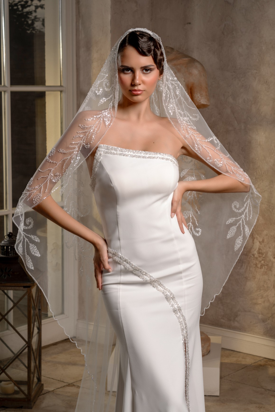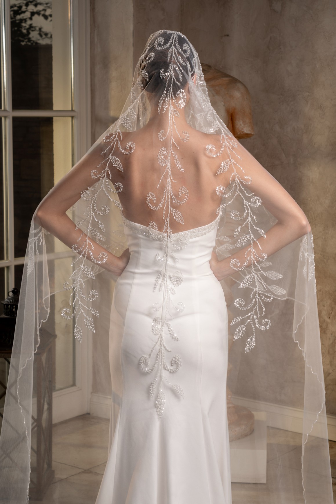 - 2,3 metre uzunluğundaki bu tül duvak, gelinliğinizin uzunluğuna ve tarzına uyum sağlayarak etkileyici bir siluet oluşturur.